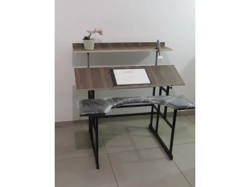 שולחן סופרים חזק, יציב ואסתטי, עם משטח אור בגובה אפס של השולחן, בעיצוב ייעודי לצרכים של סופרי סת"ם.